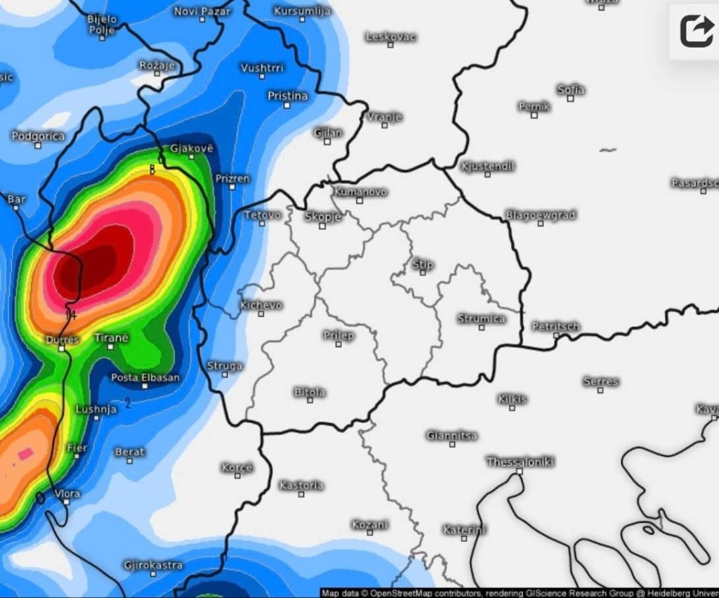 Кон вечерните часови, односно и покасно ноќва,територијата на МАКЕДОНИЈА,ќе биде опфатена од нов влажен бран,кој ќе ни зададе врнежи од дожд со повремено засилен ветер од јужни правци.Локално се очекуваат поинтензивни врнежи од дожд.