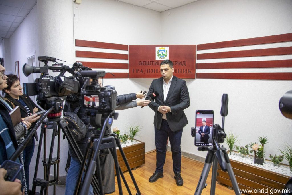 – Од денeска започнува мојот втор мандат, заедно со мојот тим и администрацијата и секако на сите јавни претпријатија, основни и средни училишта, кои се дел од локалната самоуправа. Реализиравме многу проекти кои што значат за Охрид и стратешки го менуваат, а така продолжуваме и во вториот мандат. Имаме 10 нови капитални проекти на кои ќе се надополни и финиширањето на четири проекти, кои беа ветени во претходниот мандат. Станува збор за сериозна промена на сето она што ние го перцепираме во Охрид, првично за охриѓани и за сите оние кои што доаѓаат и уживаат во неговите убавини. Пред нас следува инвестициски период кој верувам дека ќе заврши успешно, односно за многу работи за кои што охриѓани разговарале, побарувале и било како насушна потреба во изнинативе 30 години, ќе се остварат, ќе се завршат и сметам дека Охрид не само што ќе изгледа поинаку, ќе има и многу подобри услови за сите жители и сите туристи кои го посетуваат, истакна градоначалникот Пецаков во својата изјава за медиумите.